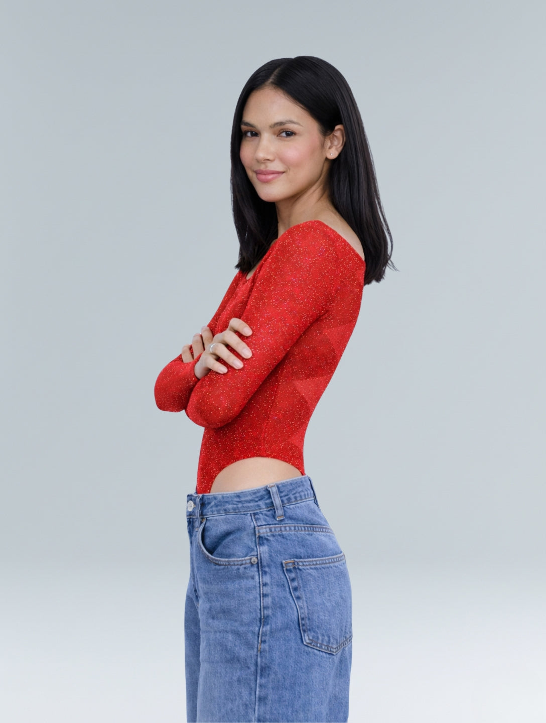 The long-sleeve design balances bold allure with elegance, making it perfect for nights out, parties, or styled under skirts, trousers, or denim. Whether you’re dressing up or adding edge to a casual look, The Stardust Mesh Bodysuit brings instant confidence with every wear.
